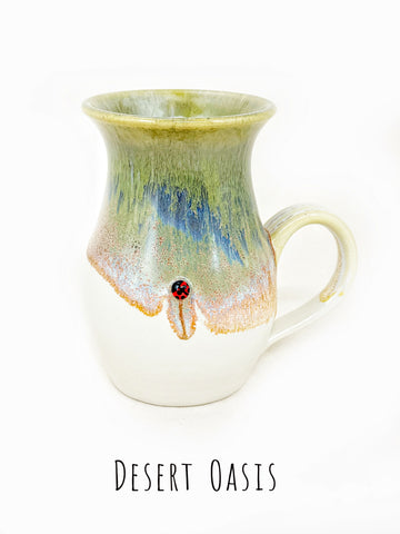 Every home needs a hand made mug. Not only are they more fun to drink out of but this design will keep your drink warmer for much longer! With the bulbous bottom to hold a lot of liquid, and the way it cinches in at the top to hold all the heat in. Oh, and yes, it does fit under your Keurig. The best part is that all mugs are microwave and dishwasher safe!Â